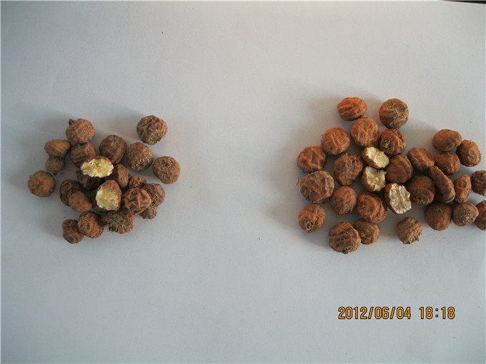 油莎豆种子哪家强?河北定州找~~~ 哈哈 选择我们就对了 下图为品质优良的油莎豆和冻坏的种子的对比,左边的种子是正常的 果肉淡黄色也有乳白色的 看上去很有食欲,右边的为冻坏的油莎豆,单单从外表看,没有差异,甚至右边的可能还要饱满一些,但是里边果肉已经变质了,下边图三可以看到 放大之后果肉呈灰白色,没有鲜艳的光泽,如果单从外表,我这样的老司机都很难辨别的,所以特别提醒想试种或大面积种植的农民朋友,一定不能买隔年、轻冻的种子,最好做一下发芽试验,避免造成不必要的经济损失,希望广大农民朋友买种子时一定要慎重。